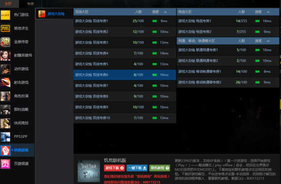 左邊是游戲的列表,找到游戲選擇好房間,雙擊加入;下面是這個(gè)游戲的簡(jiǎn)介和下載地址,以及聯(lián)機(jī)教程和意見(jiàn)箱。