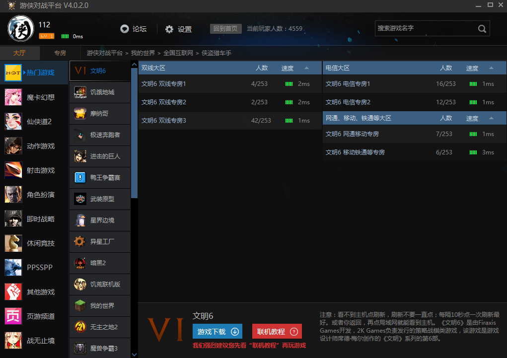 1、最全的支持游俠對(duì)戰(zhàn)平臺(tái)支持所有熱門(mén)對(duì)戰(zhàn)單機(jī)游戲