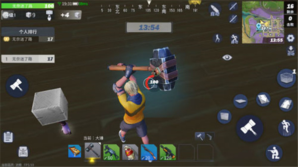1、跳傘落地后,每個(gè)人身上都會(huì)有一把錘子,這把錘子可以拆掉地圖上的任意物品,一些地形。