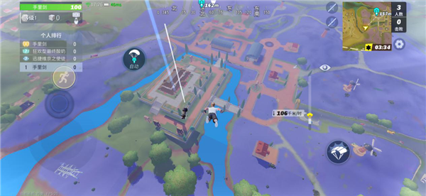直向滑行:在開傘的時(shí)候通過鏡頭和方向鍵反方向操作,使人物像方向鍵位置小幅度位移,但是下降的速度非常的快,所以建議人多的時(shí)候使用這種跳傘方式,能搶占先機(jī)。