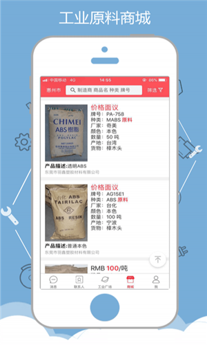 【原料商城】以O(shè)MO(線上融合線下)模式,提供塑料、金屬、添加劑等工業(yè)原料。讓買賣直接對接。
