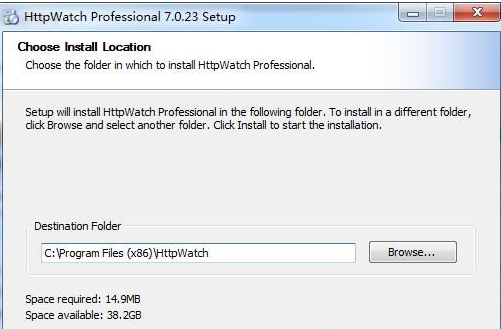 6、設置軟件安裝位置,默認安裝路徑為:C:Program Files (x86)HttpWatch,建議安裝到除系統(tǒng)盤以外的其它盤。