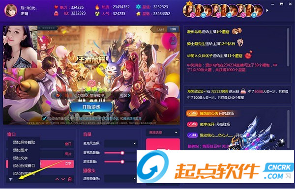 3.點擊立刻開播后進入開播準備界面,左下角可以選擇添加圖片或者添加文字,可以調整位置的層級