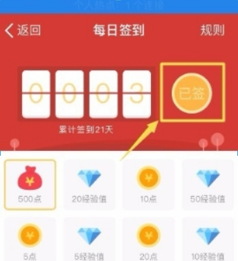 在簽到界面中,我們可以通過點(diǎn)擊最上方的“簽到”按鈕獲取簽到點(diǎn)數(shù),一般都是3點(diǎn)左右。