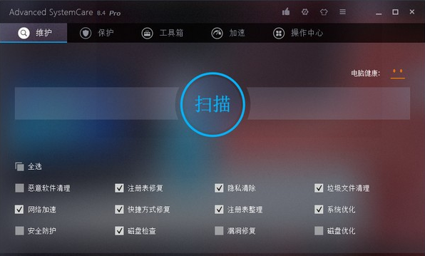每天清理您的計算機以保持運行順暢并釋放寶貴的系統(tǒng)資源。作為功能強大的個人電腦清潔工具,Advanced SystemCare 11可讓您通過單擊即可刪除垃圾文件、臨時文件、緩存以及無效快捷方式,即使是堆積式的注冊表文件。新磁盤優(yōu)化技術(shù)也被用來釋放磁盤空間并提高磁盤性能。