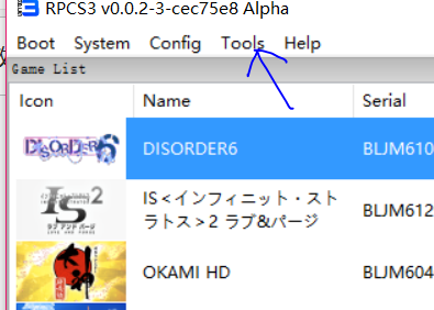 6.然后打開模擬器是不是會出現(xiàn)游戲縮略圖了。成功運行游戲首先需要安裝系統(tǒng)固件,不安裝固件大多數(shù)游戲都會模擬失敗。別擔心,點擊tools;