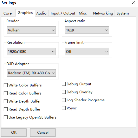 13.然后進入graphics圖形設置。render渲染api默認vulkan速度最快圖像也好,各個游戲配置不同,請自行實驗;