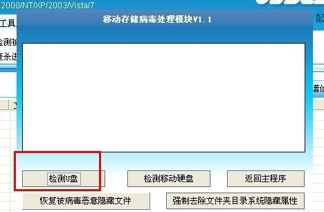 單擊【檢測移動盤】按鈕,打開【移動存儲病毒處理模塊】對話框。