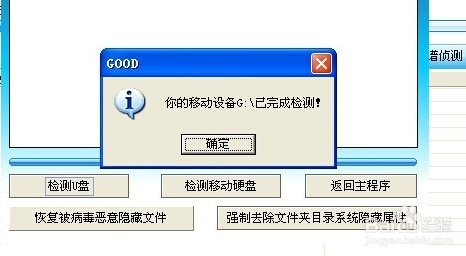 單擊【確定】按鈕,打開【已完成檢測,是否調(diào)用foldercore查殺U盤中的文件夾圖標(biāo)病毒】提示框,單擊【是】按鈕,即可打開用usbcleaner中自帶的【文件夾圖標(biāo)病毒專殺工具】對話框,來檢測文件夾圖標(biāo)病毒。