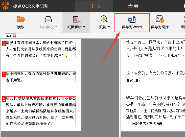 第六步,檢驗完畢后,我們點擊軟件上方的“保存為Word”選項,就可將所識別的文字保存成Word形式了。