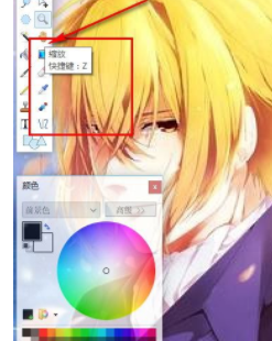 3、點(diǎn)擊這個(gè)圖片,使用鼠標(biāo)左鍵放大圖片,右鍵縮小圖片,可以在下方的調(diào)色板設(shè)置前景色。