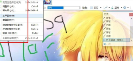 5、圖片編輯功能,支持水平翻轉(zhuǎn)、畫(huà)布尺寸、調(diào)整尺寸、垂直翻轉(zhuǎn)、加載圖片到選擇區(qū)域。