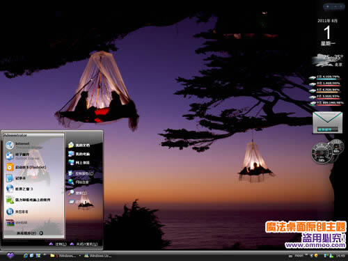 魔法桌面非洲情人樹旅館電腦桌面主題是一款xp、win7雙系統(tǒng)主題,壁紙中搖蕩在情人樹上的燭光愛巢,與海面上絢麗的霞光輝映,浪漫到了極致。七夕將近,借這份浪漫景象,愿天下有情人終成眷屬。
