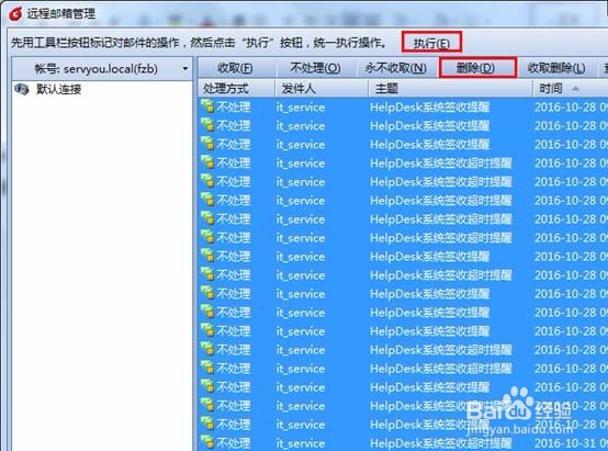 5、單擊刪除按鈕然后選擇執(zhí)行就可以將你服務(wù)器的郵件刪除:
