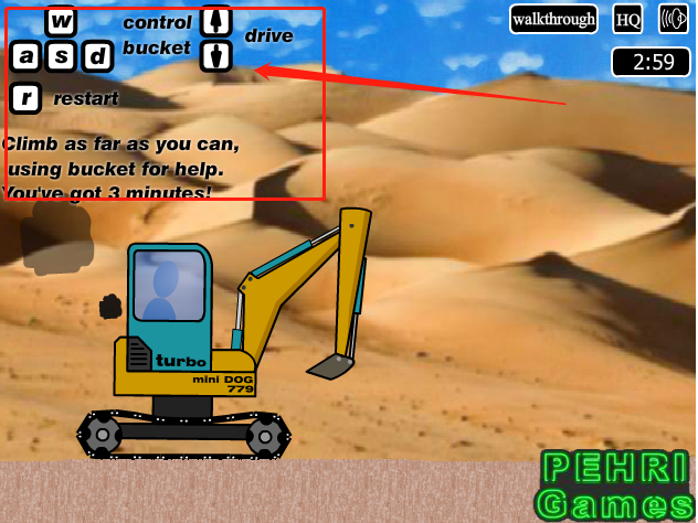 4、利用W鍵將挖掘機的鏟子抬高再下放進行挖掘,可不斷往前進。