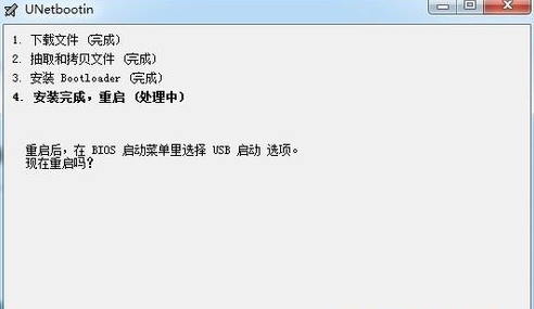 9、軟件提示要求重啟系統(tǒng),進(jìn)入bios設(shè)置,然后就能用U盤引導(dǎo)系統(tǒng)了。