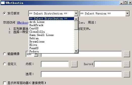1、首先你需要有完整的Linux系統(tǒng)iso文件,如果你沒有Linux的iso鏡像文件,UNetbootin可以幫您下載各個(gè)發(fā)行版的iso 文件。如下圖