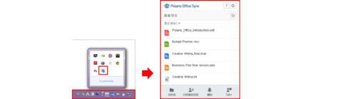 2、在計(jì)算機(jī)安裝Polaris Office Sync并登錄。把文檔保存到指定的文件夾,即可在移動(dòng)設(shè)備或Web網(wǎng)站查看同一文檔。