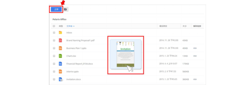 3、訪(fǎng)問(wèn)Polaris Office網(wǎng)站并登錄后,點(diǎn)擊“上傳”按鈕或把文檔拖動(dòng)到網(wǎng)頁(yè),即可上傳計(jì)算機(jī)內(nèi)文檔。