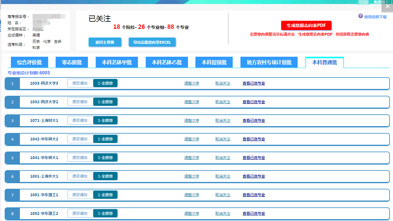 1.5.生成志愿意向表PDF