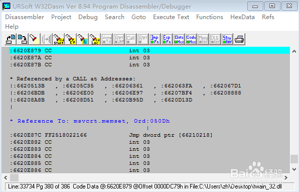裝載32位的匯編代碼動態(tài)調(diào)試反匯編windows自帶的計算器程序 calc.exe.