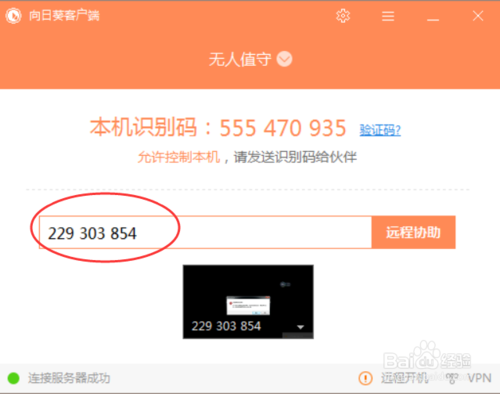 然后這里我們可以不用綁定賬號,直接點擊下面的遠程協(xié)助功能,進入遠程協(xié)助首頁,被圈住的這里是我的電腦識別碼(是唯一固定的)