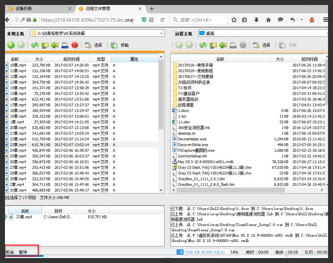 成功連接后,將默認打開本地與遠程計算機的桌面目錄。