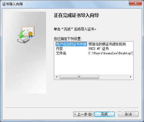7、在證書導(dǎo)入向?qū)ы撁?,點擊“完成”。