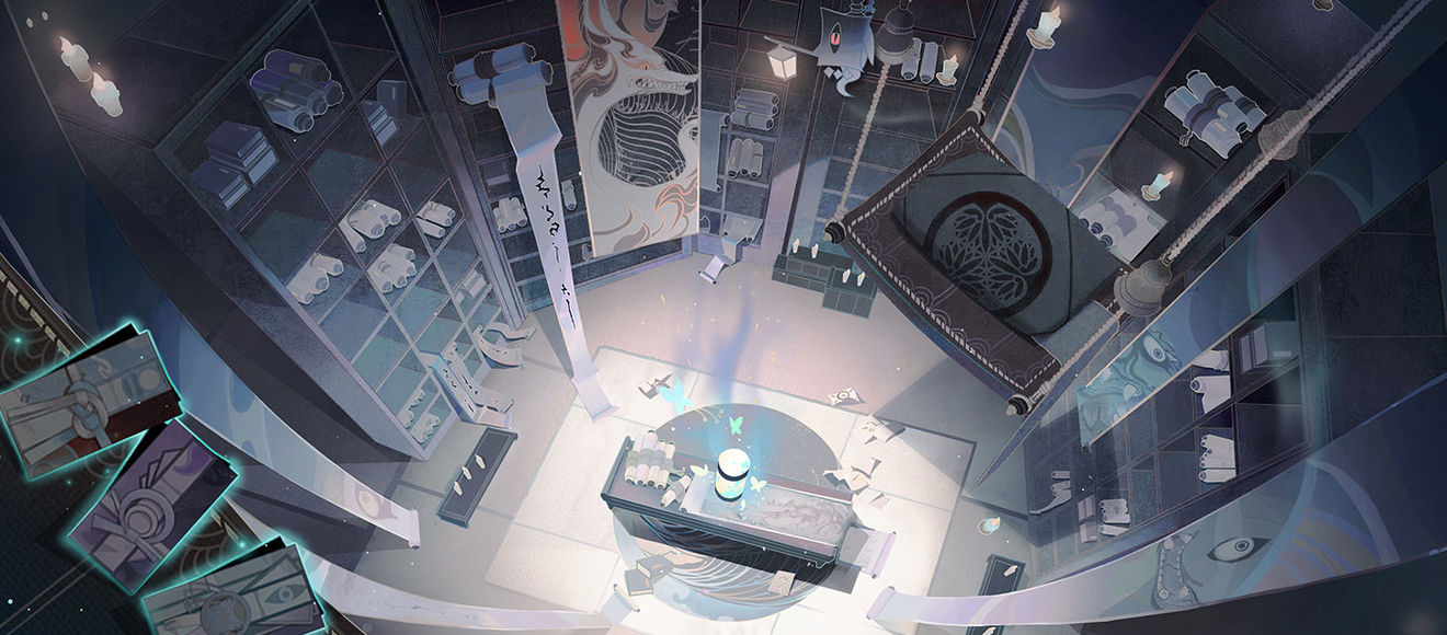 而聞名四方的“百聞館",就坐落在溫泉庭院的右側(cè)。除了作為紀(jì)念品商店之外,還是掌柜青行燈收藏的各種妖怪物語的書庫。如果客人們在蜃氣樓中聽到了什么有趣的異聞,都可以來這里與掌柜青行燈探討其中的秘密。