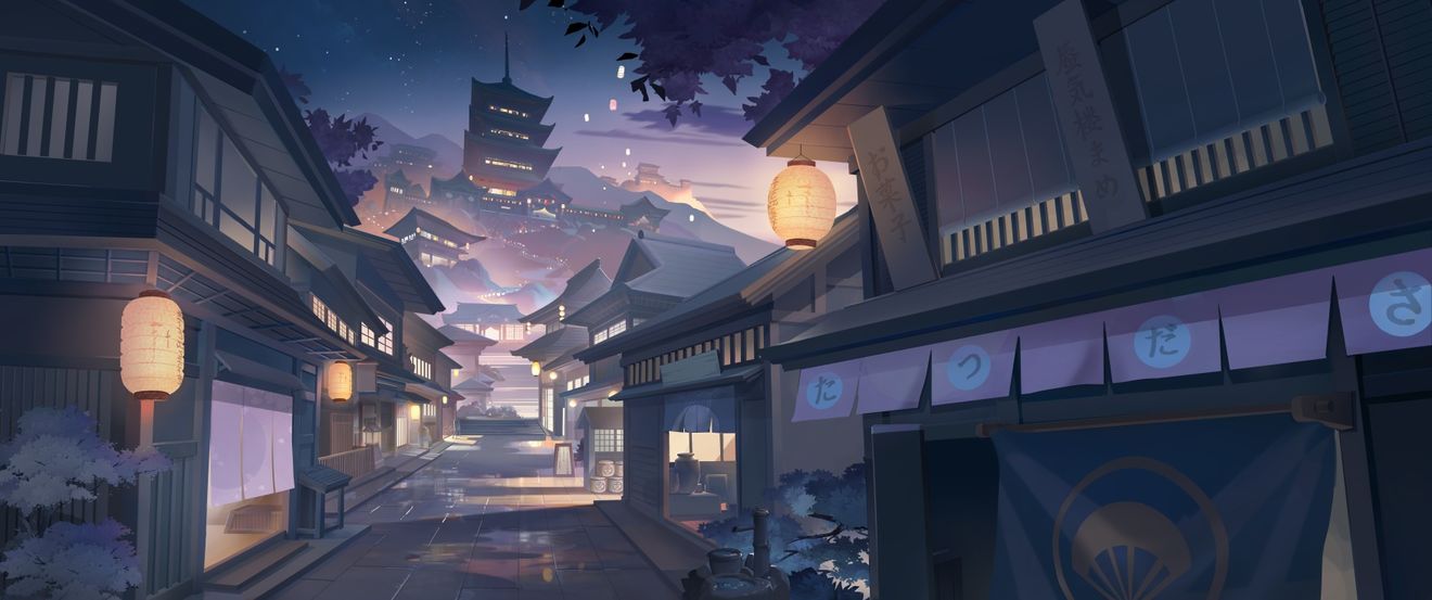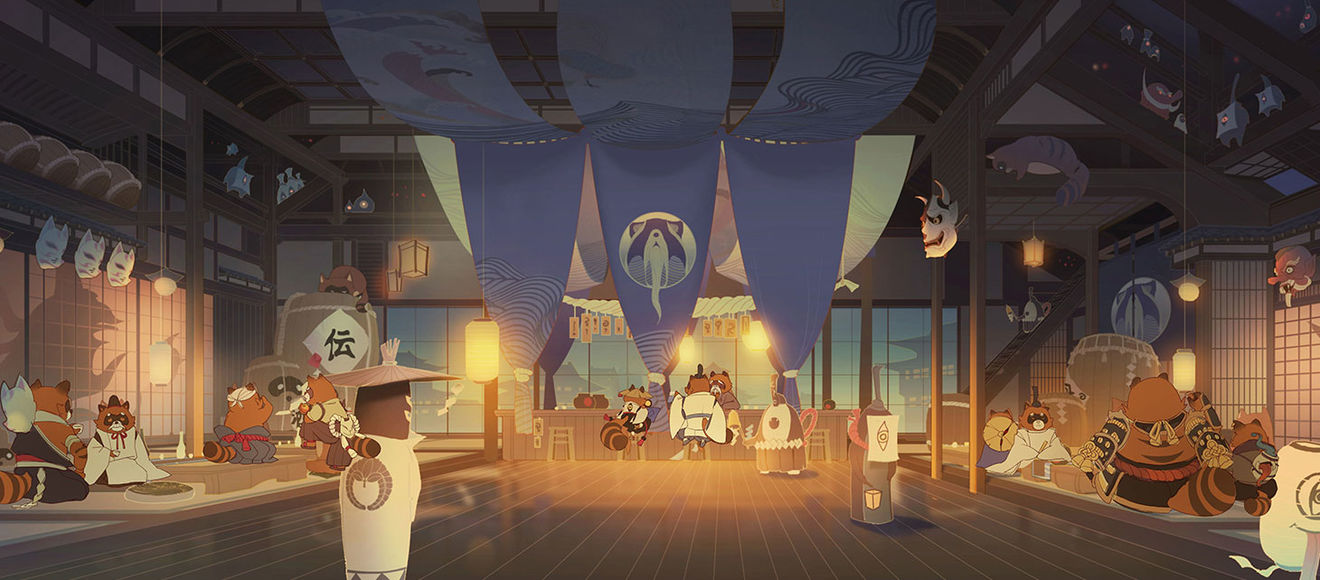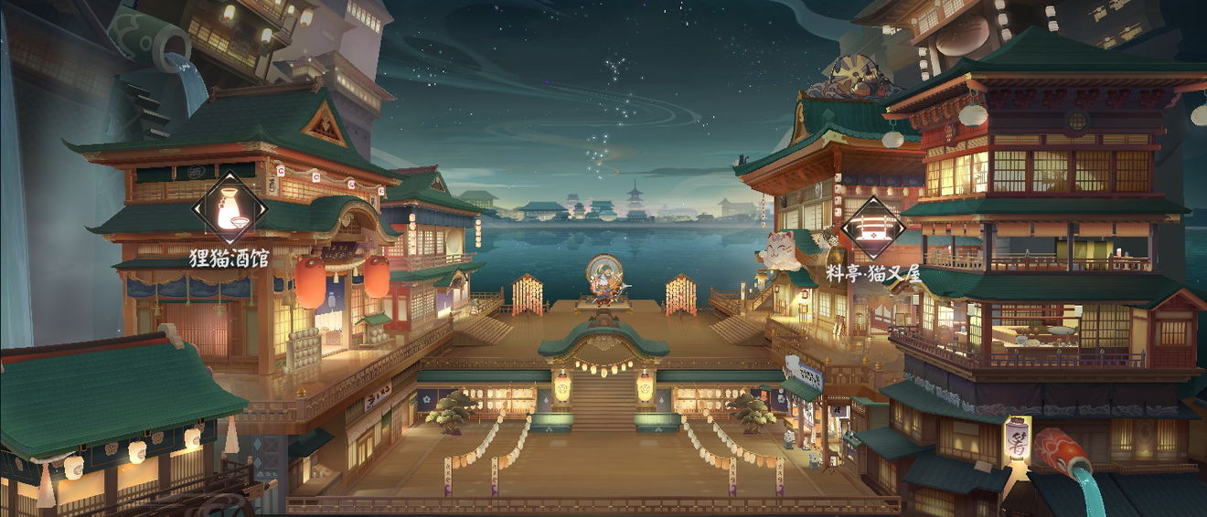 只要踏上水橋,穿越黃昏的邊界,就能進(jìn)入這片只屬于妖怪的樂園。如客人們所見,眼前這座溫泉水的庭院,是右邊的溫泉水傾瀉下來形成的。庭院周圍有各色各樣的商店,夜夜燈火通明,鼓樂喧天,歡迎來到這里的客人。