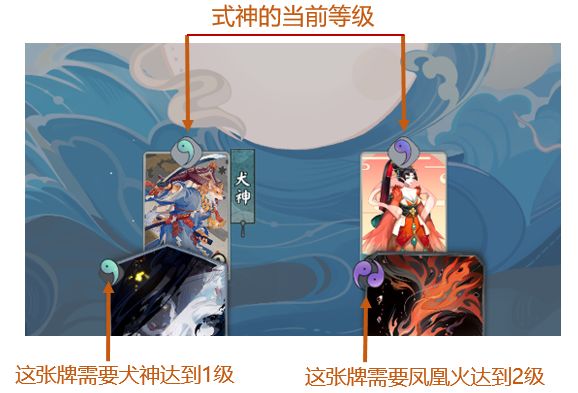 (歸屬同一式神的手牌使用和式神相同的顏色符號來區(qū)分)