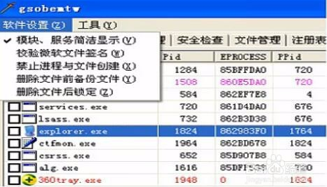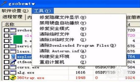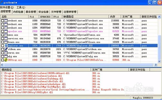 “進(jìn)程管理”功能介紹查看系統(tǒng)中運(yùn)行的進(jìn)程和下掛模塊,可以對(duì)進(jìn)程進(jìn)行終止、掛起、刪除、禁止執(zhí)行(IFEO原理)等操作,對(duì)模塊進(jìn)行卸載、刪除、重命名等操作。