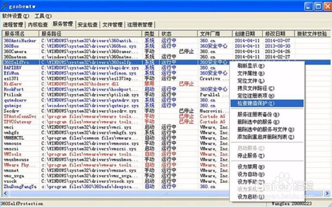 使用“檢查鍵值”后,藍(lán)色顯示的是有鍵值保護(hù)的隨系統(tǒng)啟動(dòng)的驅(qū)動(dòng)程序。他們有可能是殺軟的自我保護(hù),也有可能是木馬的鍵值保護(hù)。