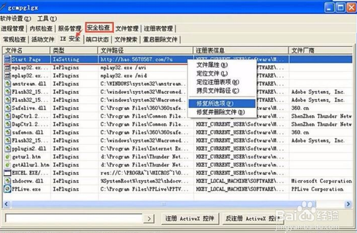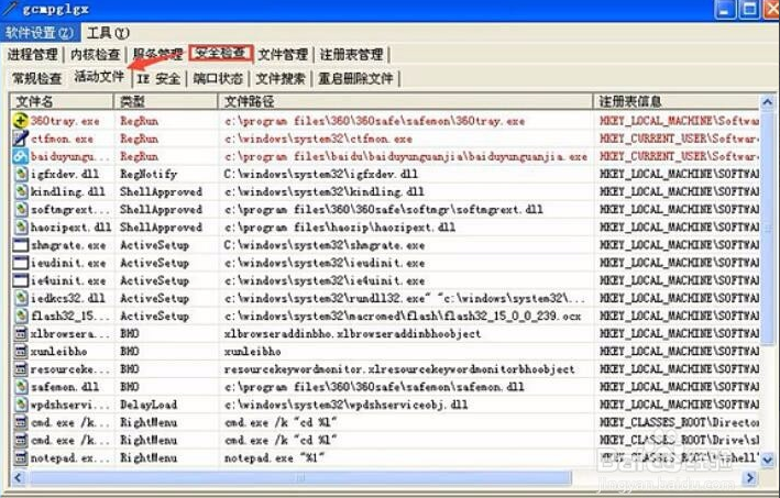 活動(dòng)文件:列出了全部啟動(dòng)項(xiàng)和explorer加載項(xiàng),清理木馬時(shí)可以檢查一下是否有木馬的啟動(dòng)項(xiàng)目。