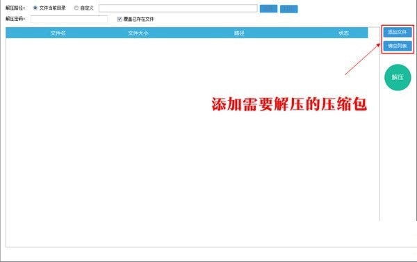 1 點擊[添加文件],添加需要解壓的文件到解壓列表。