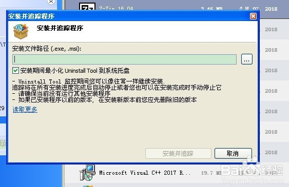打開軟件,點擊下邊的【追蹤安裝】,彈出窗口,載入你要追蹤安裝的程序。