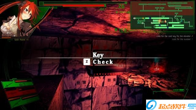 繼續(xù)前進(jìn)在斜向下的鋼管處下去下面一層,下層電梯過(guò)去撿到第一把鑰匙。