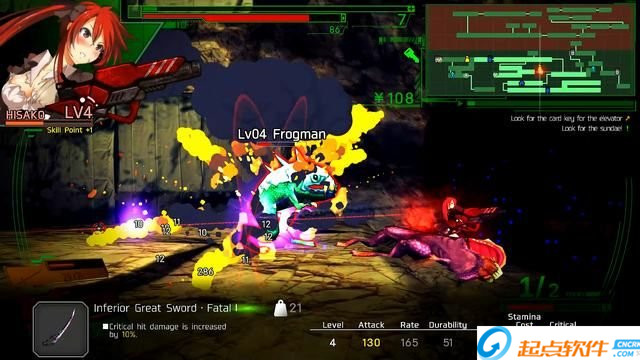 前面儲(chǔ)存點(diǎn)學(xué)會(huì)強(qiáng)化武士刀(黃色零件),給武器刀增加附加屬性(紫色配件)。