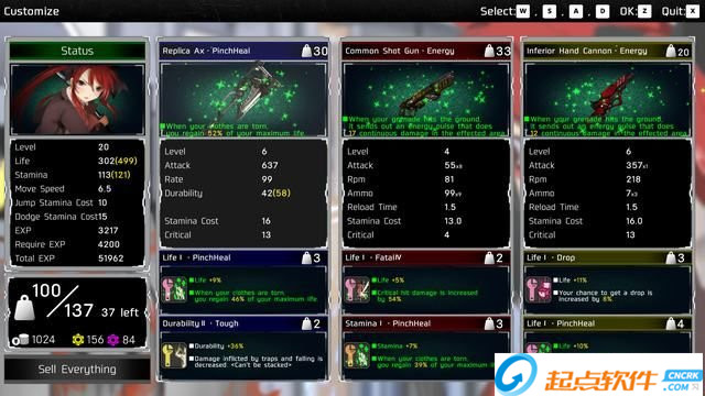 每種武器都可以提升等級(jí),在武器插槽上插入強(qiáng)力配件可以增加武器的屬性。