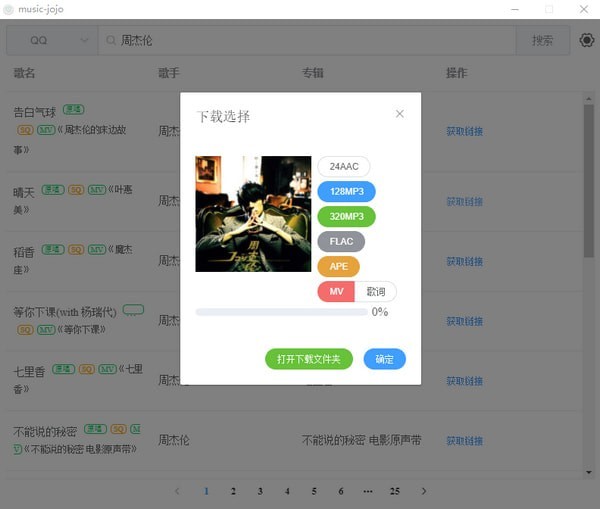 下載時(shí)可以選擇歌曲的格式、碼率進(jìn)行下載