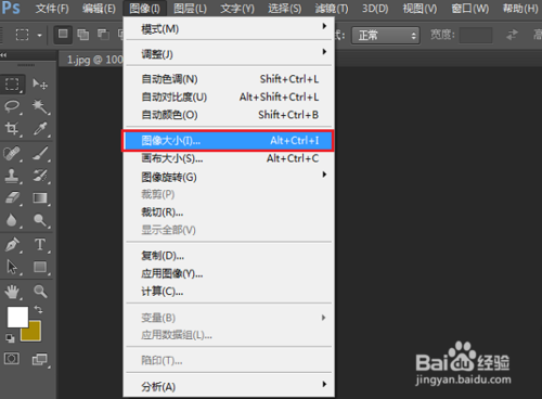 3、打開圖片之后,點擊“圖像->圖像大小”,如下圖所示: