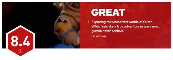 開放世界探索向動(dòng)作冒險(xiǎn)游戲《星際拓荒(Outer Wilds)》在近日正式發(fā)售,IGN日前也公布了對(duì)它的評(píng)測結(jié)果:8.4分 優(yōu)秀。評(píng)測者認(rèn)為,本作新奇的“時(shí)間循環(huán)”概念以及探索該游戲的未知區(qū)域是一場真正的冒險(xiǎn),大部分其它游戲都沒有這種體驗(yàn)。IGN評(píng)測結(jié)果:8.4 分 優(yōu)秀!