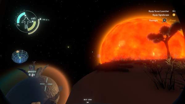 《星際拓荒(Outer Wilds)》是一款太空探索類的冒險(xiǎn)解謎游戲。玩家可以對(duì)太陽系進(jìn)行探索。游戲采用了第一視角,讓玩家的好奇心和模擬感更加逼真和有趣。在游戲中每顆行星的體積都非常小,你需要一定的操作水平才可以將飛船停在上面。這些星球的環(huán)境并不是一成不變的,玩家可以利用探測儀去找尋一些神秘的信號(hào),運(yùn)氣好的話你將會(huì)遇到奇怪的外星生物。