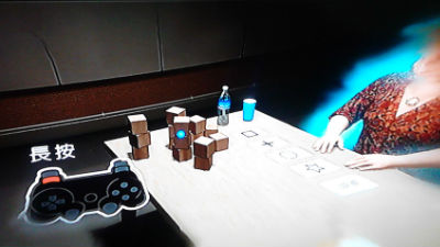 反復(fù)兩次這樣的操作后繼續(xù)進(jìn)入艾登視角,然后對(duì)著桌上的積木按住L1再把兩個(gè)遙感同時(shí)往下推然后放開,積木就被推到了。然后反復(fù)這樣的操作,對(duì)著桌上的卡片、水瓶、椅子、玻璃、空調(diào)等任何物品經(jīng)行此操作。最后對(duì)著凱瑟琳按住L1把兩個(gè)遙感往中間推。