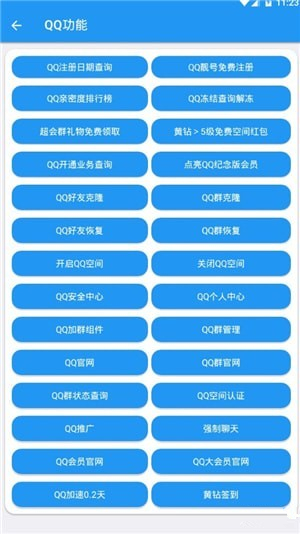 君Q助手app擁有各種功能:君Q助手軟件擁有QQ透明頭像,QQ資料清空,特殊文字制作生成,王者空白重復(fù)名,游戲取名助手,微信錢包生成,休閑小游戲,二維碼生成,網(wǎng)頁源碼獲取,一圖一言,歷史上的今天,全局透明壁紙,在線翻譯,亮度隱藏圖生成,等等各種功能。
