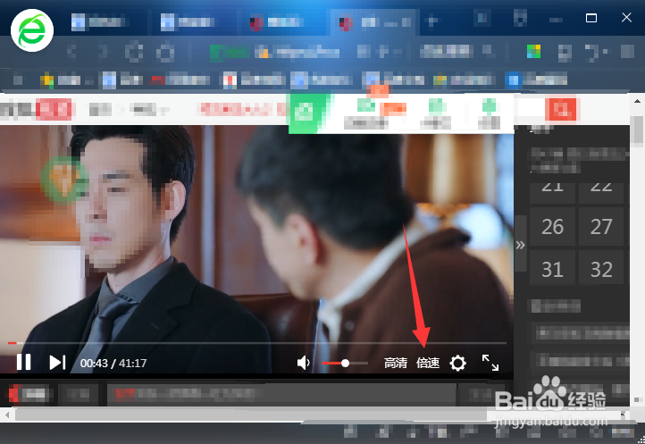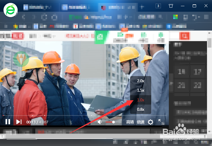 開始播放視頻,鼠標指向正在播放的視頻,下方彈出功能區(qū),鼠標指向倍速。