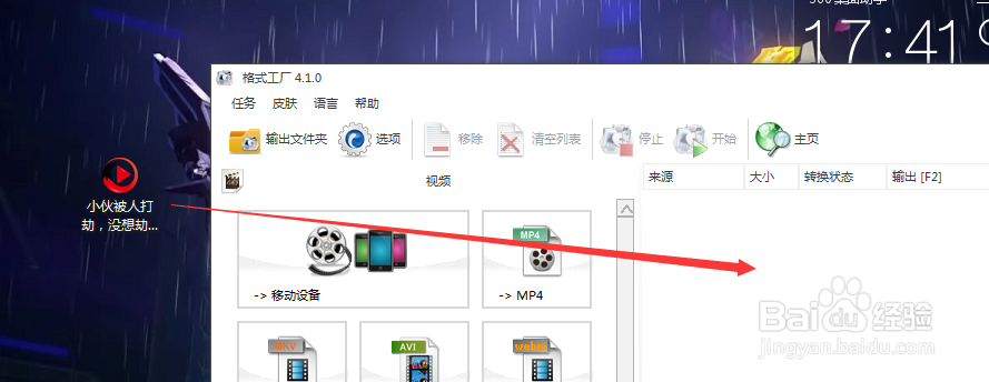 這時候,我們再打開格式工廠,拖動一下格式工廠的位置,以便于我們看的到視頻素材。(由于ifox視頻格式的原因,正常方法選擇導(dǎo)出mp4是無法找到視頻素材就無法添加任務(wù),只有直接拖拽到格式工廠任務(wù)欄才行)