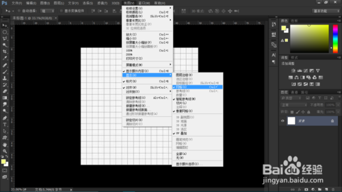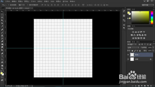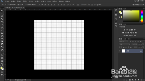 打開PS,新建圖層,大小隨意,我這里用了是50厘米×50厘米的!背景顏色用的是純白色。 鼠標(biāo)點擊視圖——顯示——網(wǎng)格 ,調(diào)出網(wǎng)格,也可以用快捷鍵【Ctrl】+【'】。然后再用【Ctrl】+【r】調(diào)出標(biāo)尺!