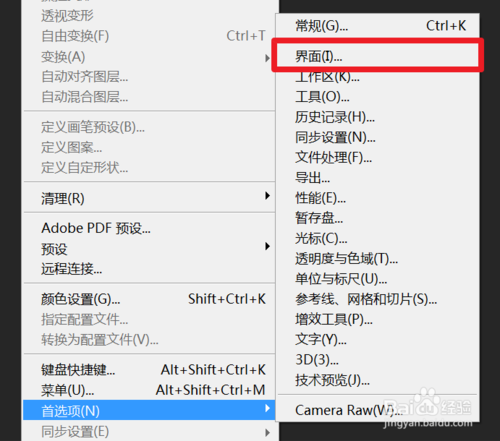 再找到最下面的【首選項】-【界面】