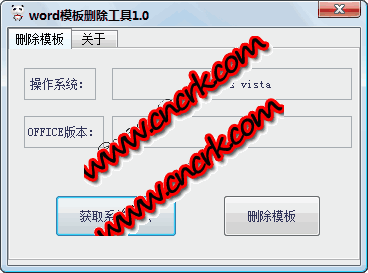 Word模板刪除工具使用方法很簡單,首先點擊獲取系統(tǒng)信息,接著點擊刪除模板按鈕就可以了,暫時只支持xp系統(tǒng),以后會加入對其他系統(tǒng)的支持。使用的時候要注意先關閉正在打開的word文檔,以免刪除失敗。